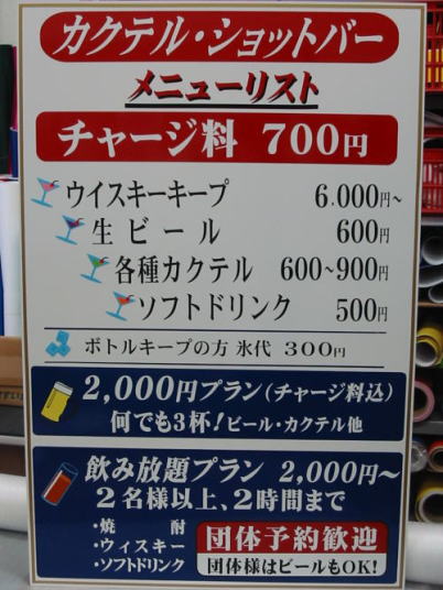 | 駐車場案内 | ビル案内 | メニュー看板 | プラン案内 | 制服販売 |
