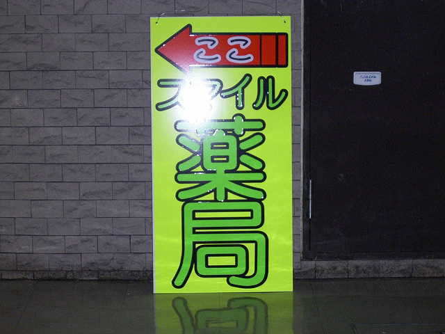 | スマイル薬局様までの案内看板用ドアウインドまでの一式です。目立ちますよね。2006/11 | |||||