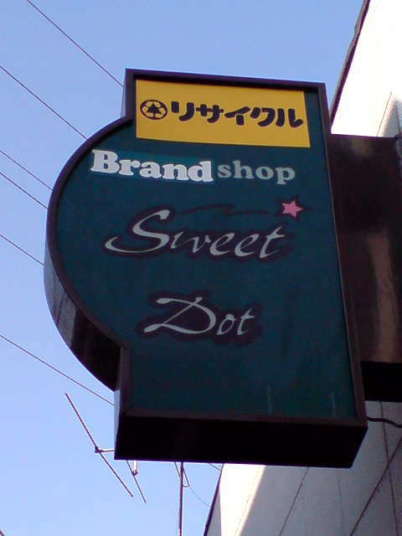 | ノートパソコンにX300と貼っただけで、オリジナルパソコンになりました。とてもよい感じ。 2008/8 | 左・中央の看板を作 スイートドット様 2008/8 |